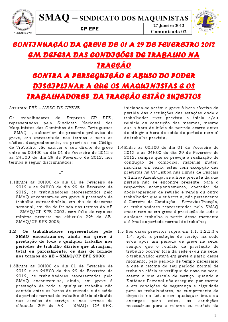 GREVE CP: SMAQ 1 A 29 FEVEREIRO 2012
