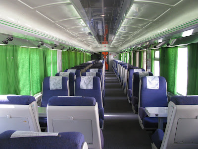 Comboio CPA 4000 Alfa pendular composto por 6 carruagens com capacidade para 301 passageiros.Na carruagem 4 os lugares 74 e 76 são reserva...