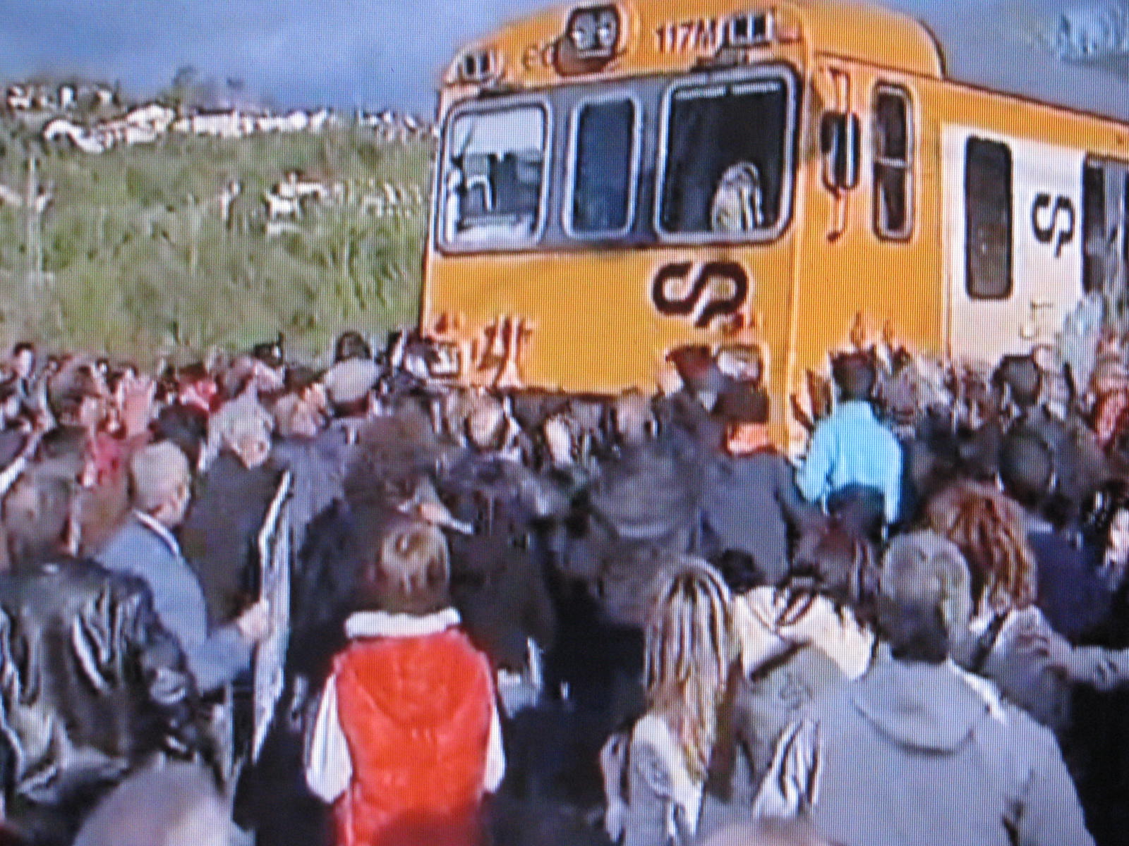 Linha do Douro , 22 Abril 2012 , população corta a circulação de comboios na estação de Marco de Canaveses.